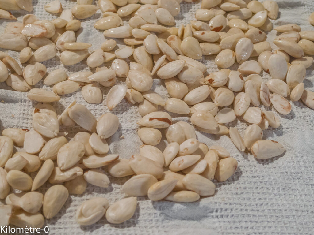 Positionnez les amandes entre votre pouce et votre index pour enlever la peau.