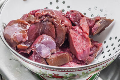 Merci à André pour ces morceaux de sanglier qui nous ont régalés une fois de plus. Cette fois, je vous propose un plat automnal avec de bons cèpes et des olives. Servis avec des tagliatelles, c’est un pur régal.