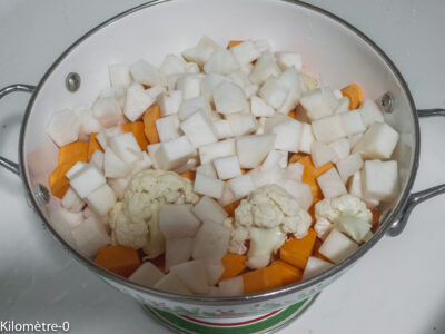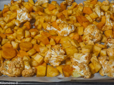 J’ai vu cette recette de légumes rôtis et sauce tahini sur une fiche à la biocoop. J’ai repris les mêmes légumes car ils sont bien de saison : patates douces, chou fleur, navets et radis. En fonction de vos goûts, vous pouvez garder ceux-ci ou en mettre d’autres, mettre plus d’un et moins de l’autre.