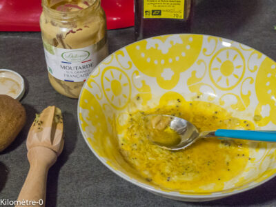 Je vous invite à cuire un peu plus de légumes au four que pour un repas car les cuissons sont toujours longues et cela vous permet de préparer d’autres repas très rapidement. Celui-ci m’a demandé 10 minutes seulement, le temps d’enlever la peau des boudins, d’écraser grossièrement la patate douce restante et de râper le comté.