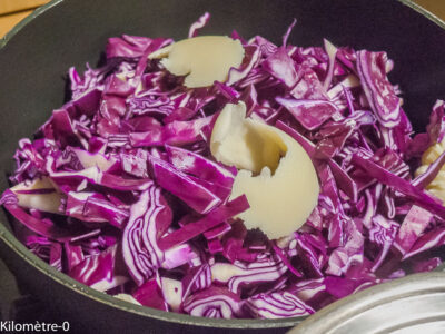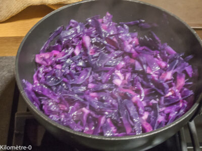 Aujourd’hui, je vous propose une poêlée de chou rouge à la saucisse de Morteau et au riz, c’est un plat bien de saison.