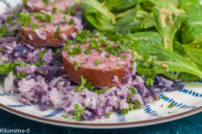 Poêlée de chou rouge, saucisse de Morteau et riz