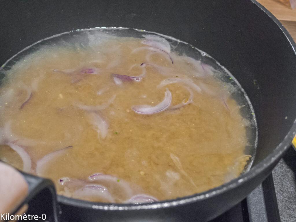 Epluchez l’oignon, émincez-le et faites le revenir dans la poêle.
