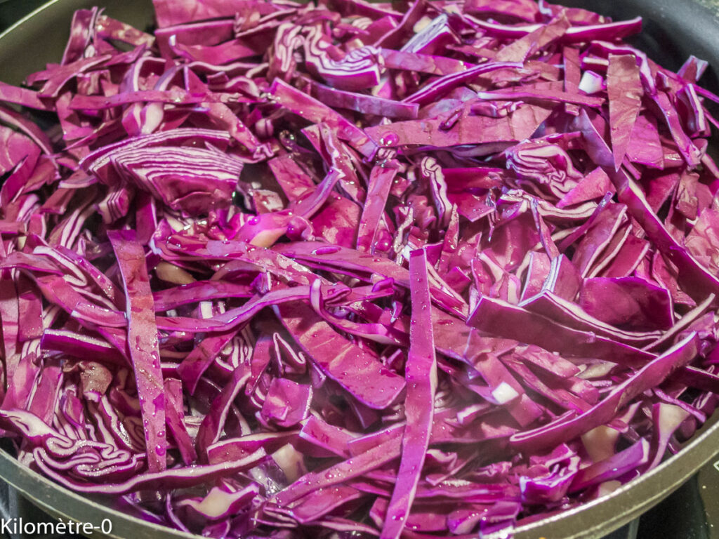 Ajoutez le chou dans la cocotte ainsi que 2 ou 3 cs de graisse de canard et poursuivez la cuisson 45 minutes.