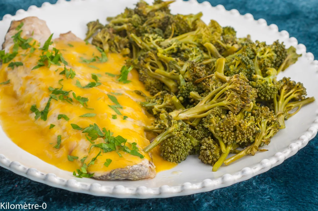 Bar aux brocolis, sauce à l’orange - Recette Kilomètre-0