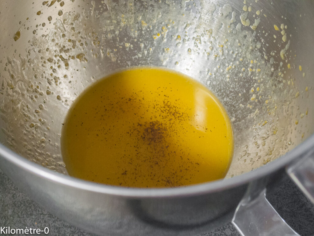 Ajoutez le jaune d’oeuf et la vanille et fouettez encore.