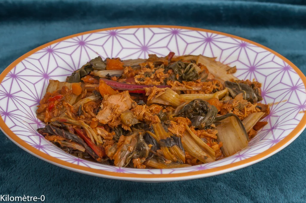 Clémentine, ma maraichère a des blettes quasiment toute l’année. Pour ne pas s’en lasser, il faut toujours trouver de nouvelles recettes qui le renouvèle. Il ne suffit pas toujours de grand chose pour les mettre en valeur. Ici, j’ai accompagné une botte de blettes de deux boites de thon à la catalane. C’est tout simple et très bon.