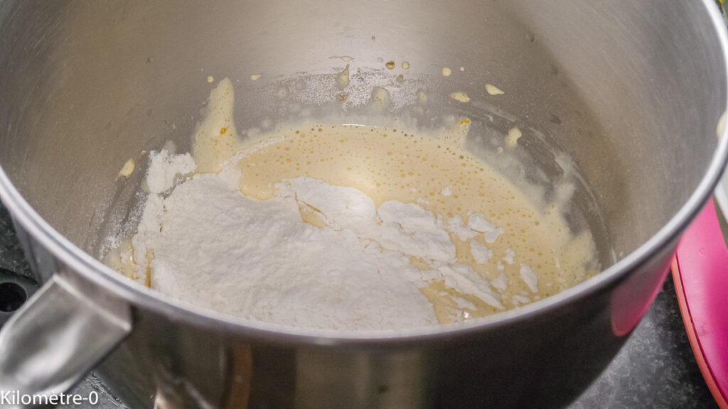 Mélangez délicatement entre chaque ajout de blancs d’oeufs.