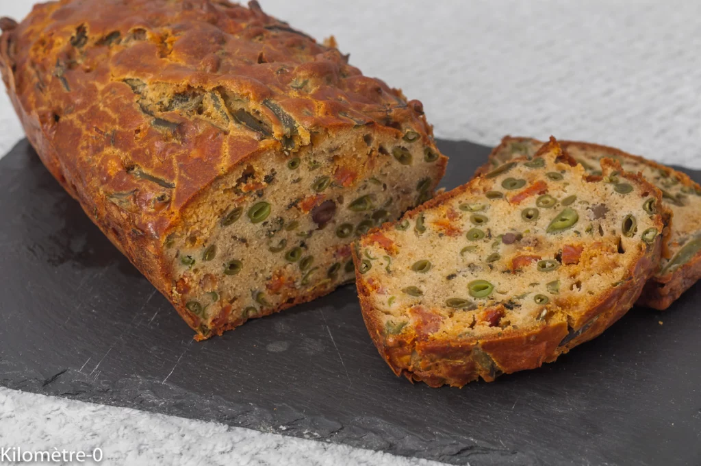 Cake salé au chorizo, haricots verts et olives