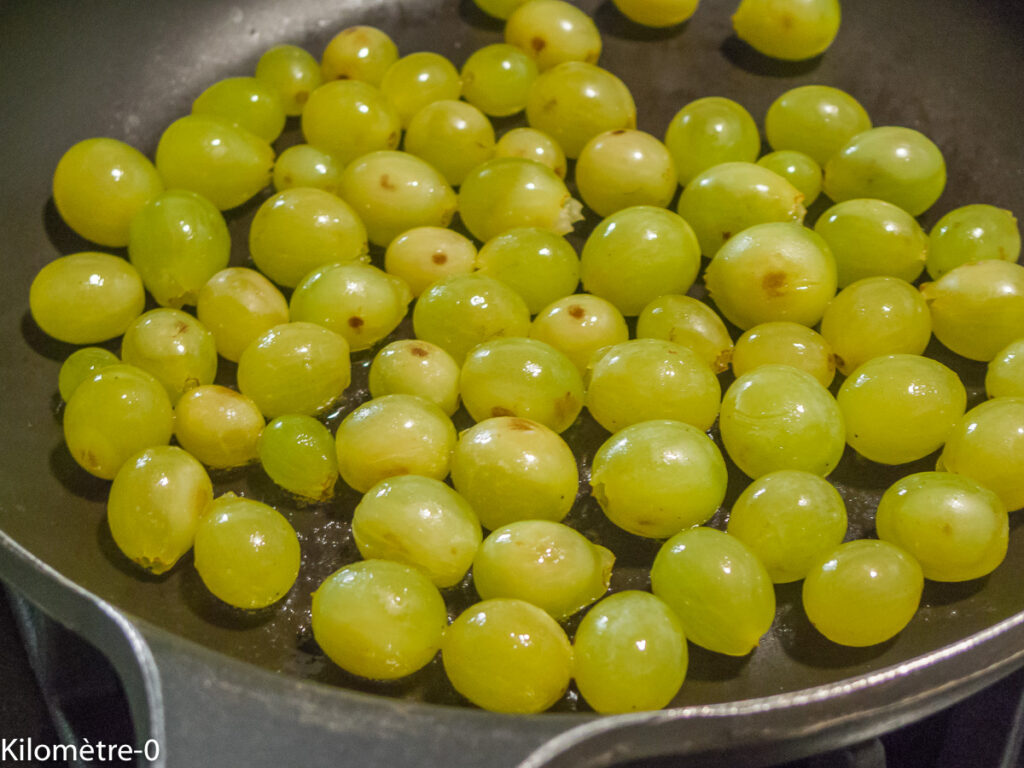 Détachez les grains de raisins et mettez-les dans une poêle avec un peu de matière grasse. Chauffez-les 5 minutes à couvert.