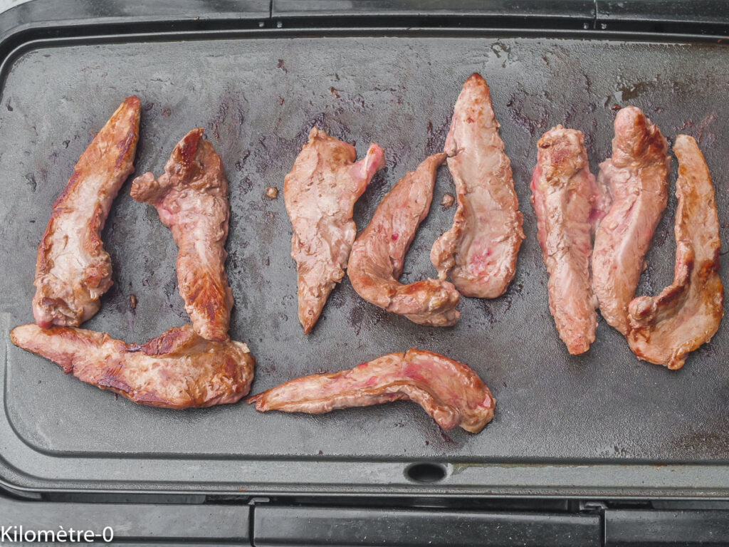 Sur un grill ou sur une plancha, faites cuire le canard en fonction de vos goûts. Certaines personnes l’aiment saignant, moi, je le sers cuit. N’hésitez pas à faire des entailles dans les aiguillettes pour que la viande ne se déforme pas à la cuisson.