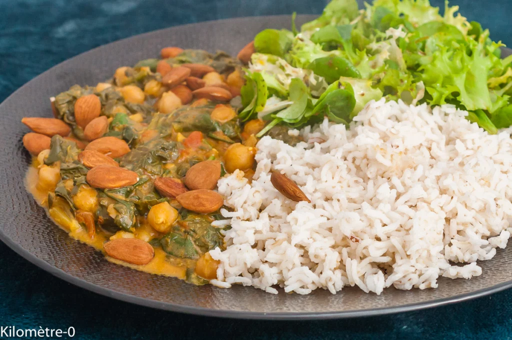 Chili de pois chiches aux épinards et aux amandes - Recette Kilomètre-0