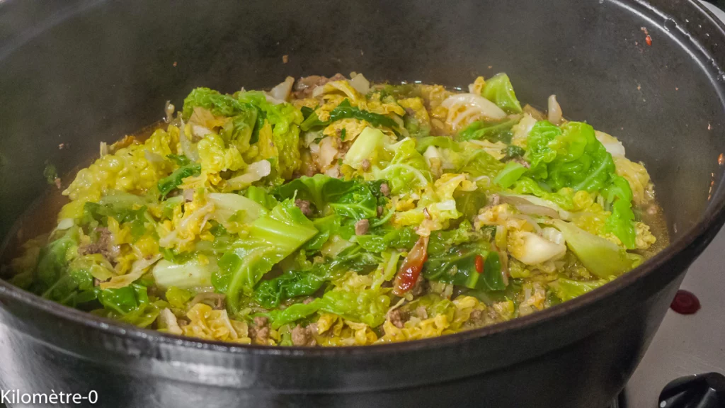 Ce plat se réchauffe très bien le lendemain. Le chou devient plus fondant.