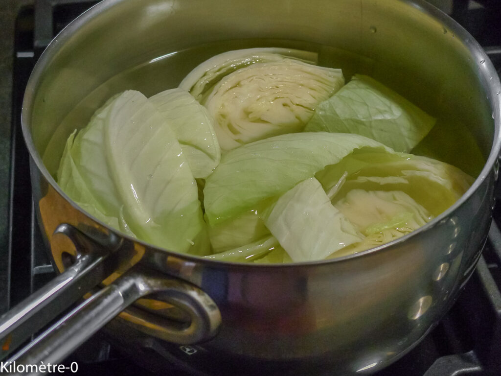 Lavez le chou et coupez-le en quatre ou six morceaux.