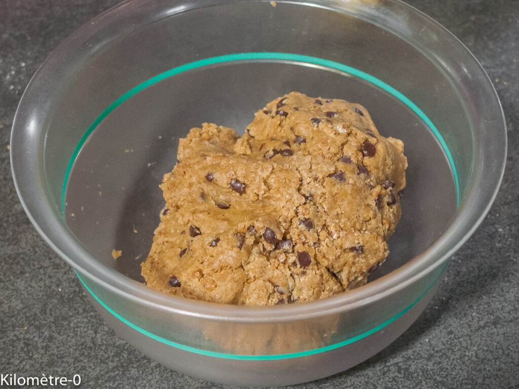 Mélangez la farine, les spéculoos mixés et les pépites de chocolat.