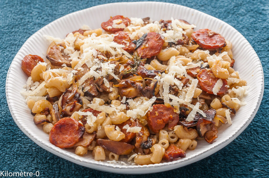 Ajoutez le chorizo coupé en morceaux ainsi que les cèpes.