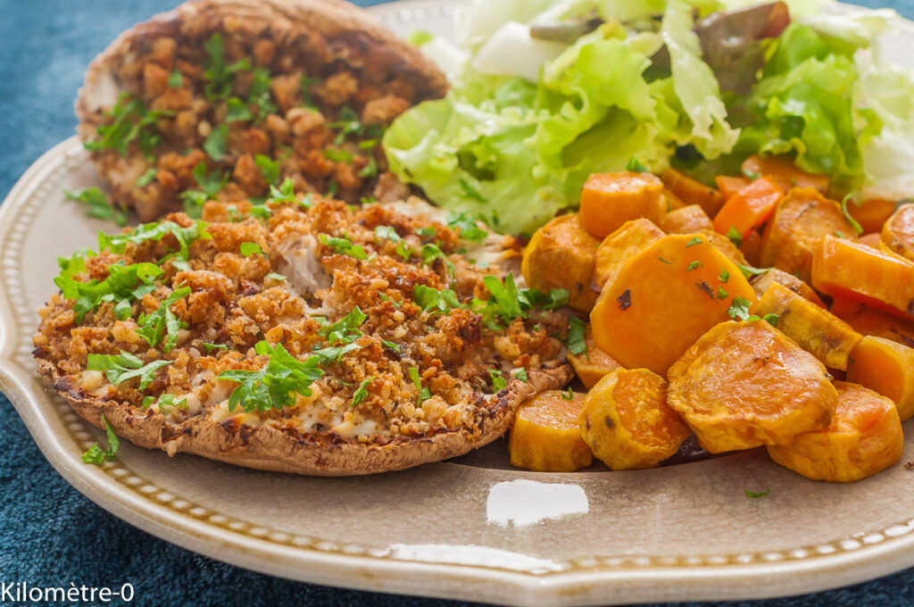 Si vous avez la chance de trouver des coulemelles lors de vos promenades, je vous propose une recette de coulemelles farcies avec de la ricotta et un mélange pain/noix. En fonction de vos goûts, vous pouvez faire autre chose. Je les ai servies avec des carottes et patates douces et une salade de saison.