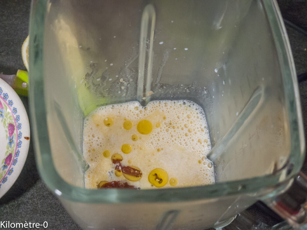 Mixez le lait avec la moutarde et 50 g de tomates séchées