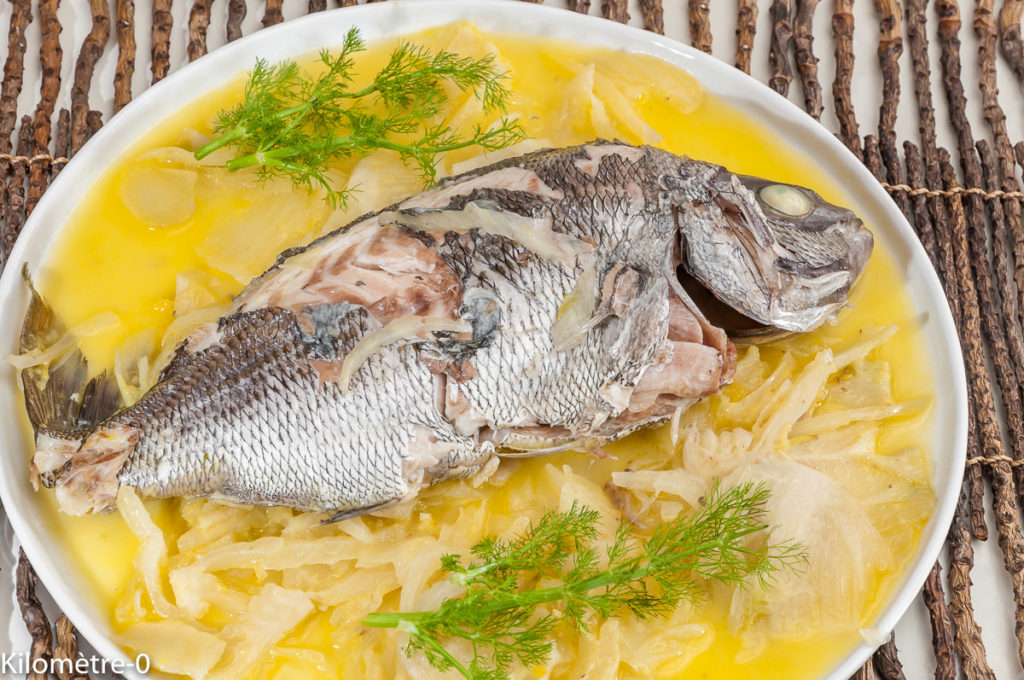 Finissez de préparer le poisson. Même si vous avez demandé à votre poissonnier de le préparer, il reste souvent quelques écailles. Lavez-le et essuyez-le sur du papier absorbant. Mettez-le sur le fenouil. Salez un peu. Rajoutez un peu d’eau pour continuer la cuisson 10 minutes.