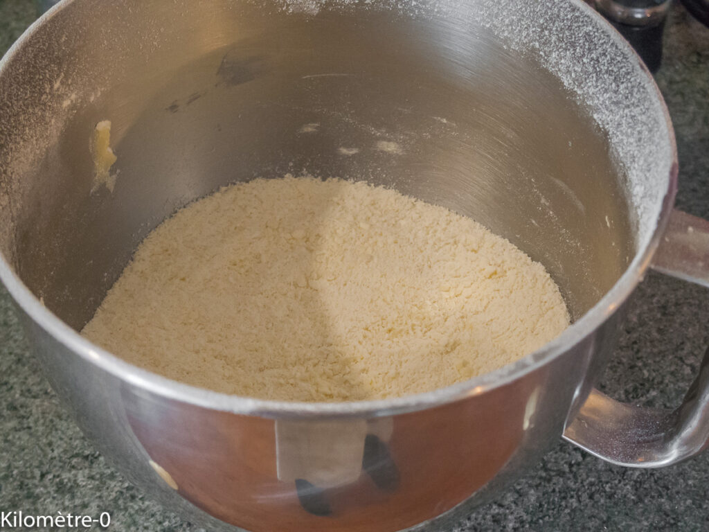 Mélangez jusqu’à l’obtention d’un mélange sableux.