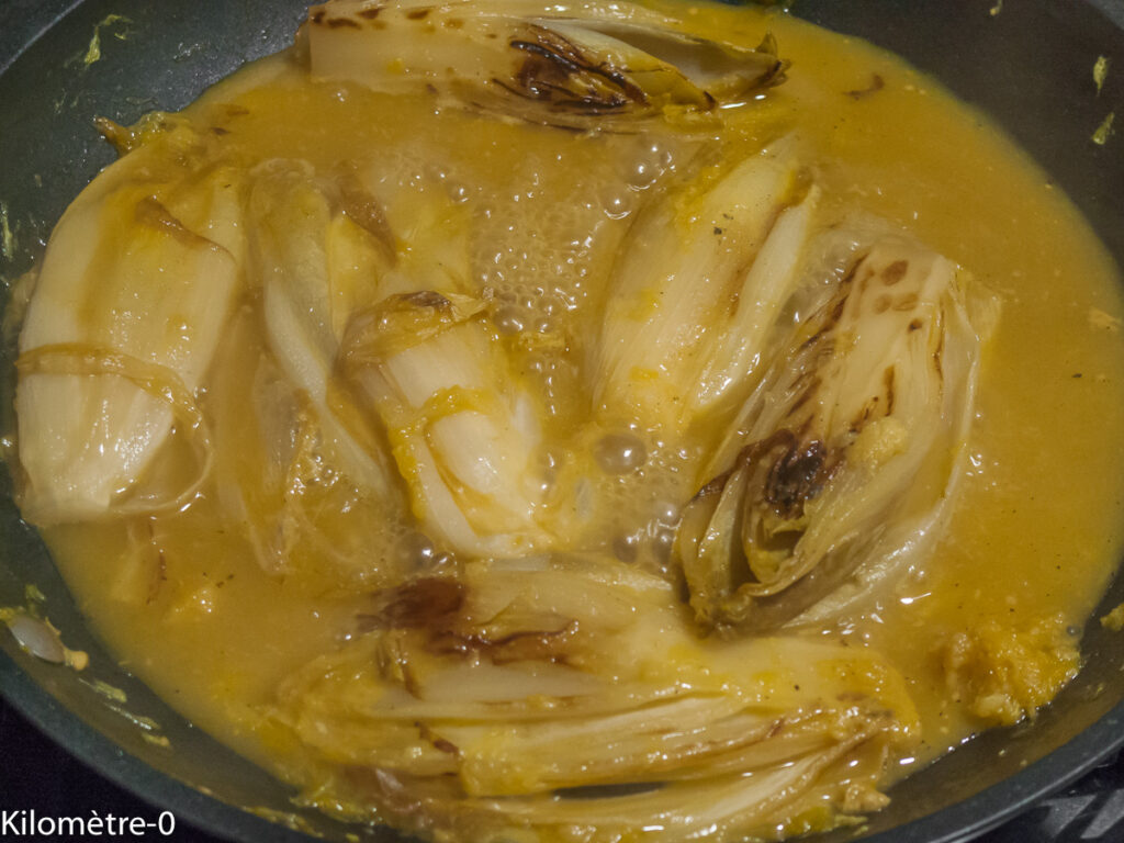 Endives à la moutarde, au miel et à l’orange