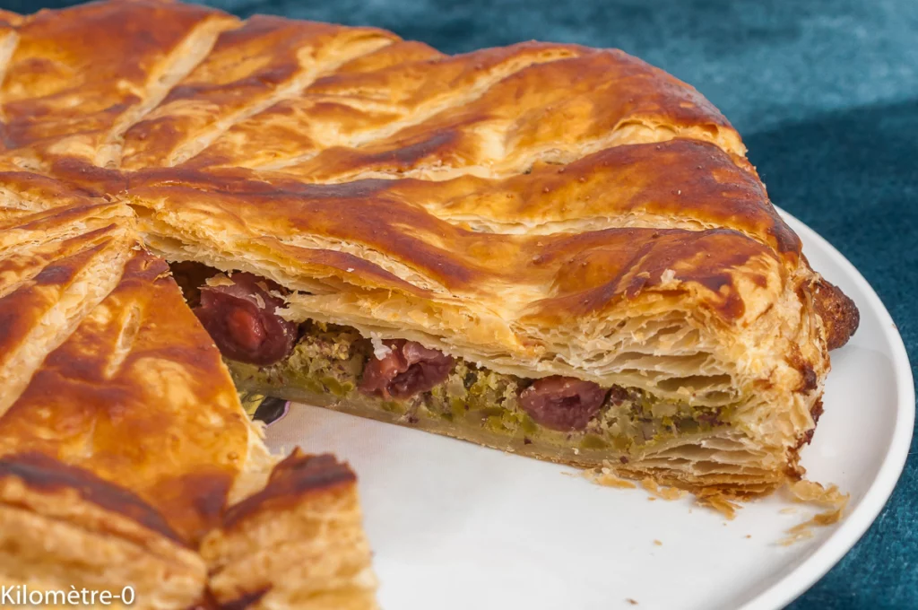 Galette des rois à la crème d’amandes et de pistaches et aux cerises - Recette Kilomètre-0