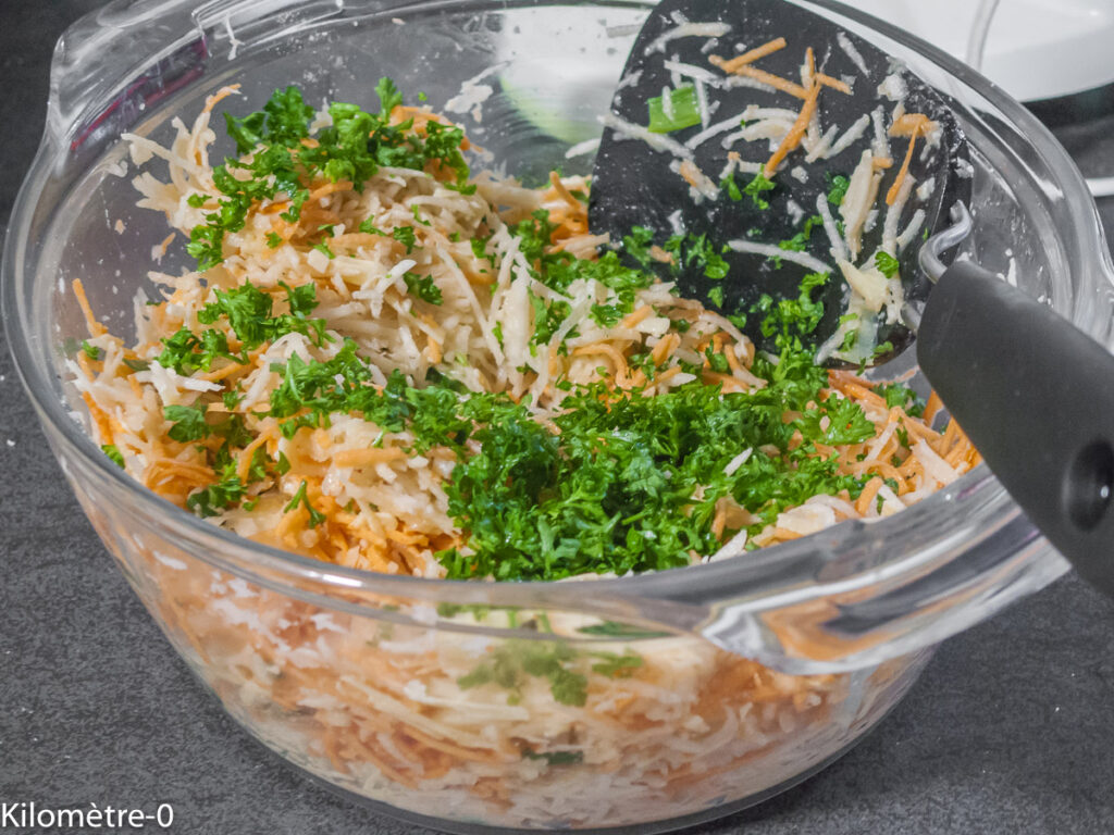 On ne marie pas souvent les navets et les patates douces. J’ai voulu essayer en voyant cette recette de galettes moelleuses sur un magazine Régal. Si vous n’aimez pas trop le navet mais que vous aimeriez en manger de temps en temps, tentez cette recette, vous pourriez l’inviter plus souvent après.