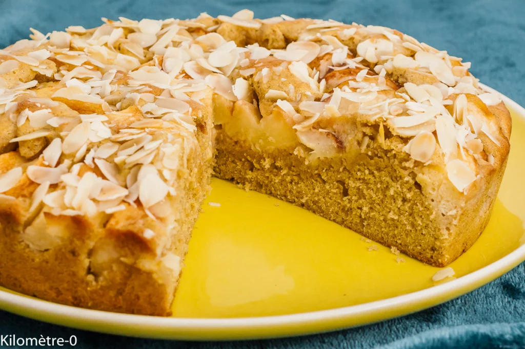 Gâteau aux pêches et aux amandes - Recette Kilomètre-0