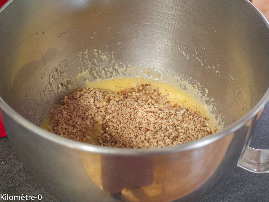Incorporez le beurre fondu, battez le mélange.