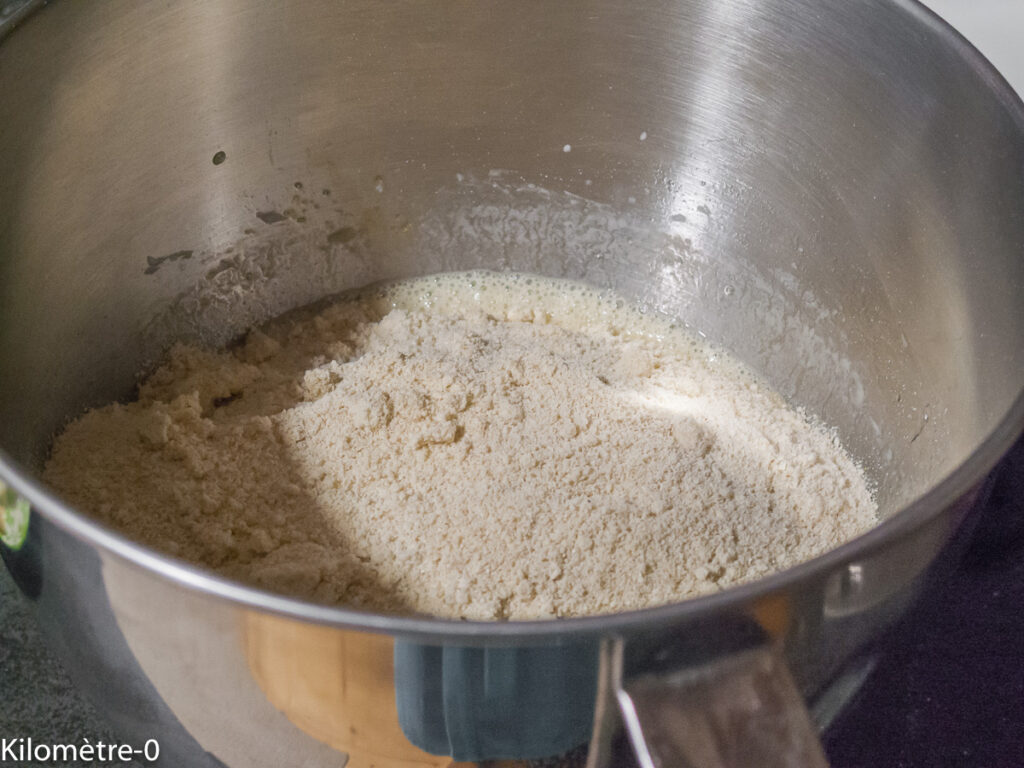 Tamisez ou mélangez bien les farines avec la poudre à lever
