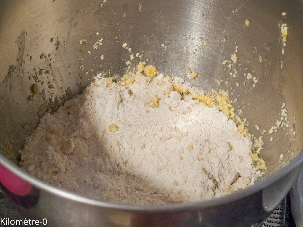 J’ai ajouté des amandes effilées et réduis la quantité de sucre. Si vous êtes un bec sucré, mettez-en 125 g.