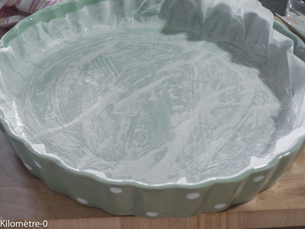 Beurrez un moule et déposez une feuille de papier sulfurisé dedans, beurrez-la aussi.