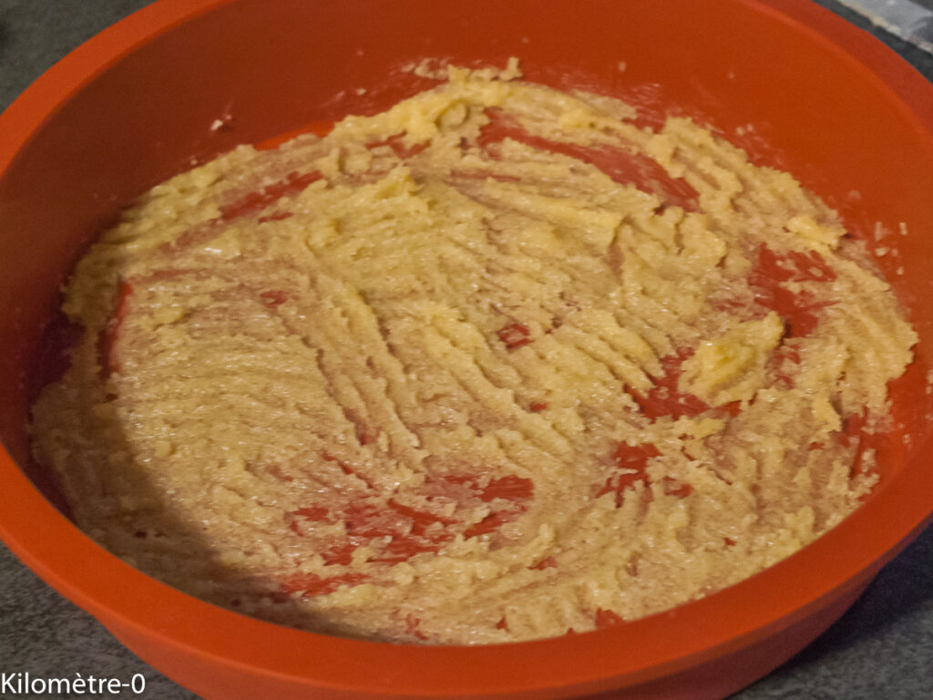 Fouettez 30 g de beurre et 30 g de sucre et étalez-le au fond d’un plat siliconé ou beurré.