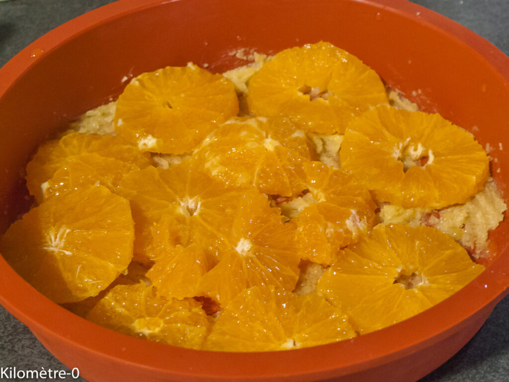 Epluchez trois clémentines, coupez-les en rondelles et déposez-les au fond du plat. S’il vous en reste un peu, mangez-les (récompense pour vous ^^).