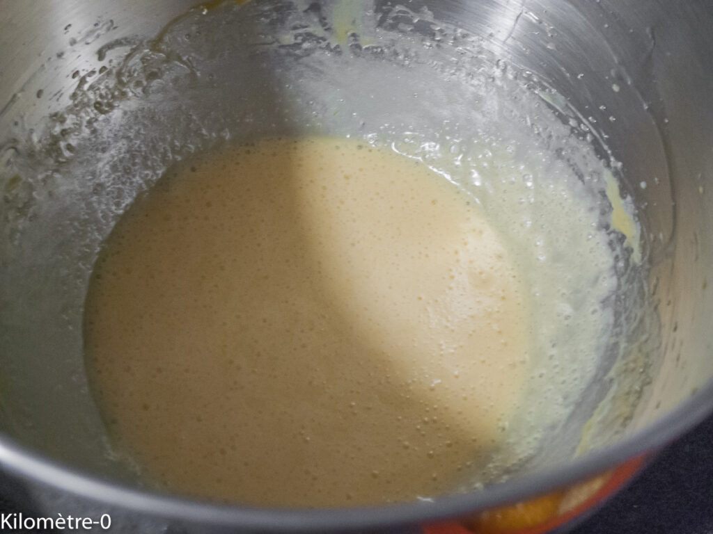 Incorporez les deux oeufs, le jus de la dernière orange et fouettez encore l’ensemble.