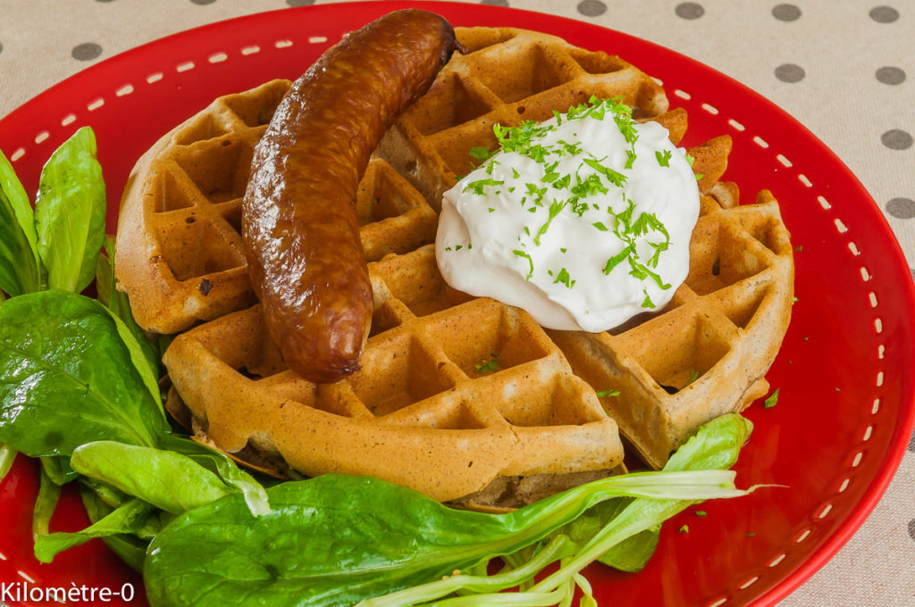 J’ai pris ces gaufres de sarrasin aux saucisses sur un magazine Bretons en cuisine. Cela change de la galette saucisse ^^.