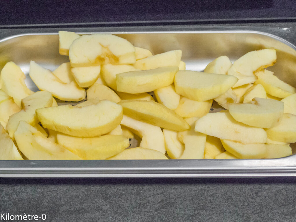 Epoluchez les pommes, coupez-les en tranches et faites-les également cuire 7 minutes dans une poêle avec un peu de matière grasse ou à la vapeur.
