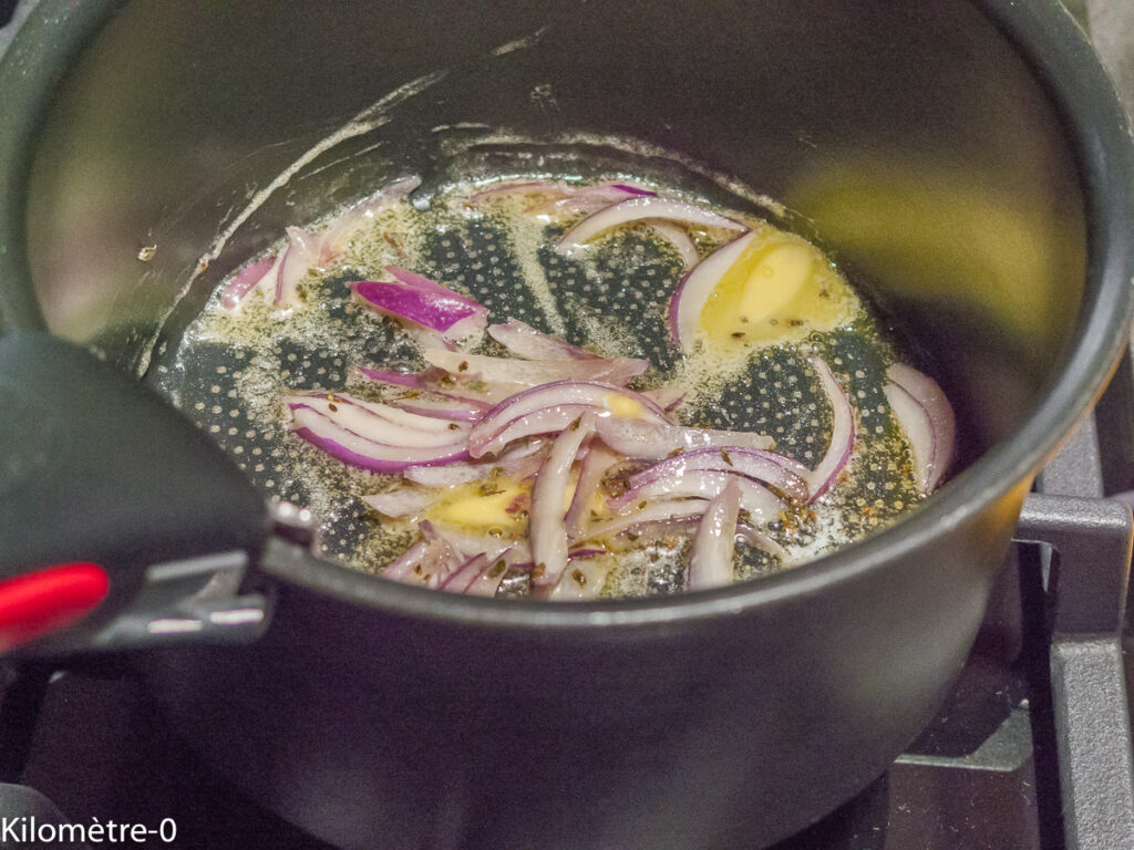 Épluchez l’oignon et faites-les revenir dans une casserole avec le beurre et le thym.