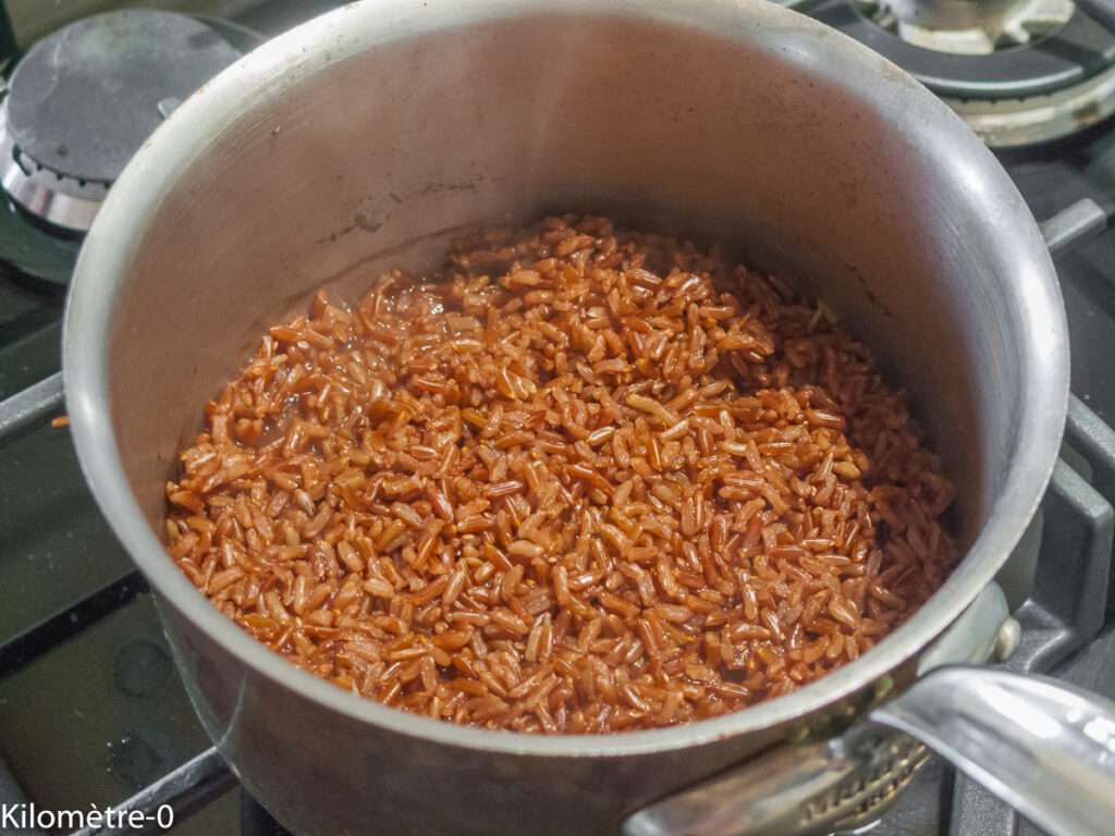 J’ai accompagné ce plat de riz rouge complet. J’avais des cèpes au congélateur mi-cuits.