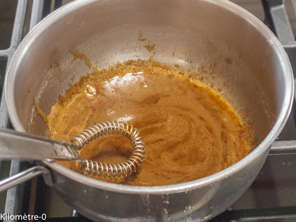Versez dans une casserole. A feu doux, faites-le chauffer et ajoutez du beurre pour avoir de la sauce pour deux. Salez si vous n’utilisez pas de beurre demi sel.