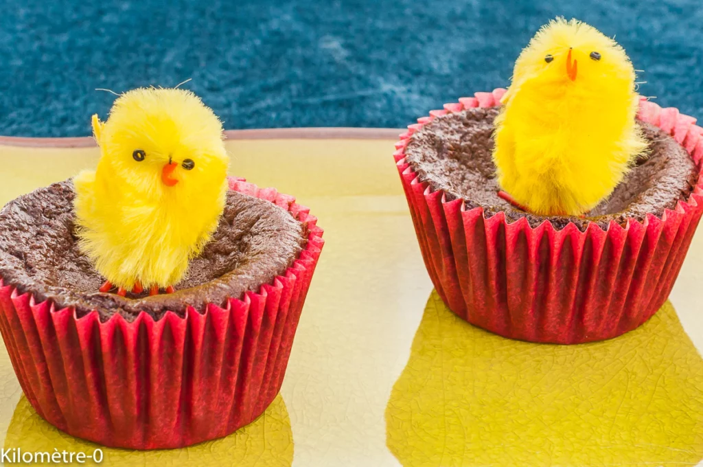 Quelle belle présentation! Toujours réussies tes pâtisseries! Michel adore les moelleux au chocolat! Et moi je prendrais bien les deux poussins jajaja ils sont trop beaux! Gros bisous à vous 2!