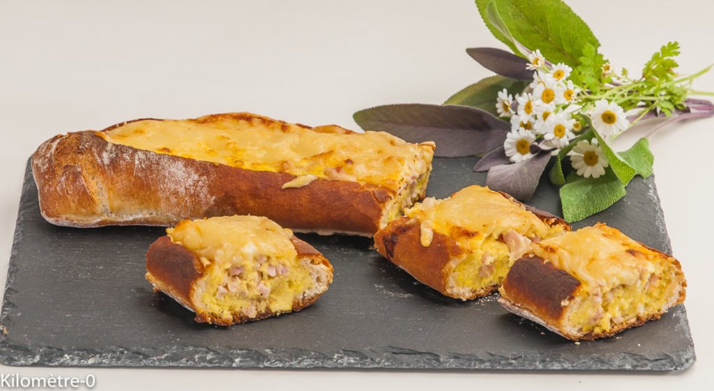 Photo de recette de baguette, quiche, jambon, emmental, omelette, rapide, apéro, facile, de Kilomètre-0, blog de cuisine réalisée à partir de produits locaux et issus de circuits courts