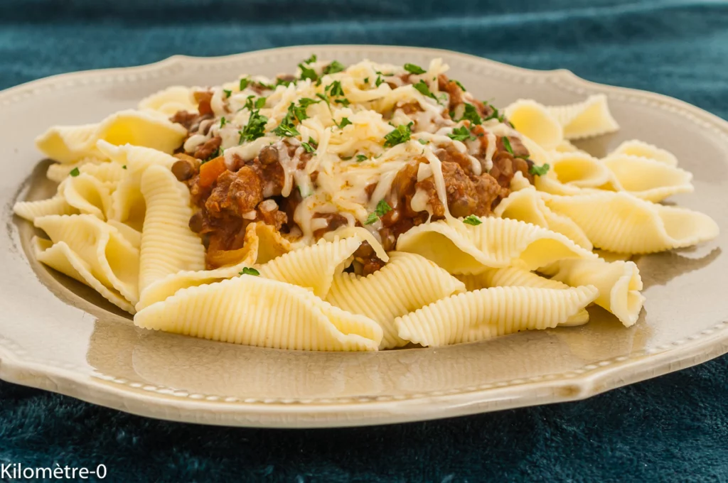 Pâtes bolognaises aux lentilles vertes - Recette Kilomètre-0