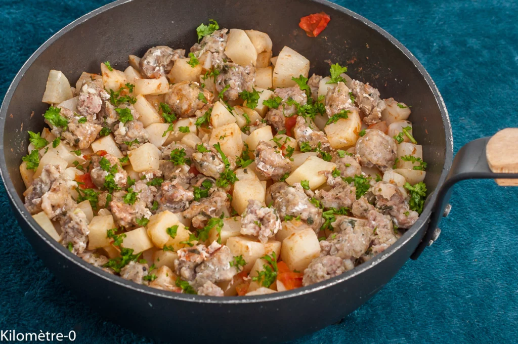 Pour profiter pleinement des radis noirs, on peut les proposer en poêlée plutôt qu’en salade. J’en fais régulièrement avec du bacon ou des lardons (recette ici) mais c’est une première avec des saucisses et c’est très bon aussi. Comme il me restait un peu de tomate en conserve, je l’ai ajoutée également. Tout compte fait, j’aurais pu en mettre plus car c’était vraiment bon et vu la quantité de radis noirs, il y avait comme un goût « de trop peu » comme on dit chez moi.