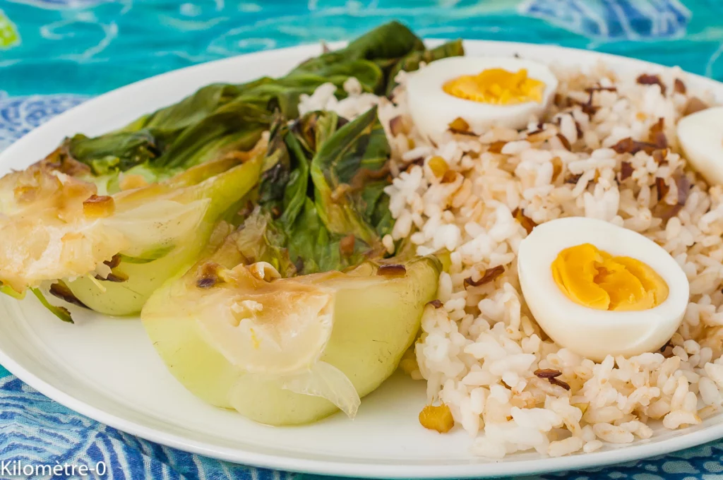Riz sauté au chou pak choi et aux oeufs