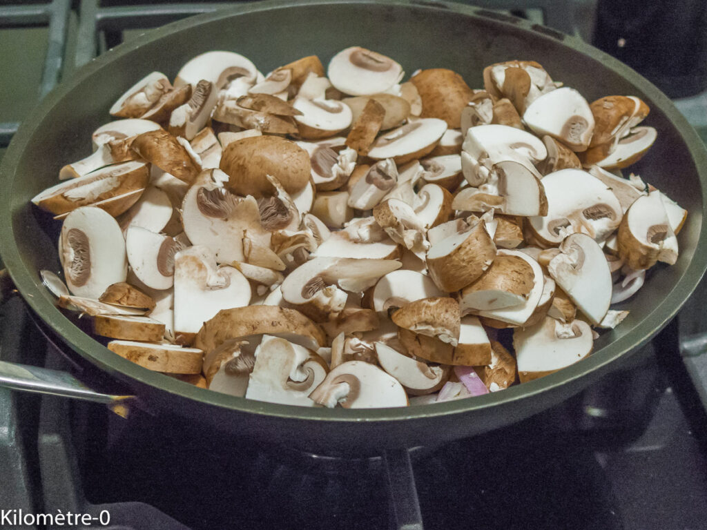 Ajoutez les aux ingrédient secs et ajoutez les champignons.