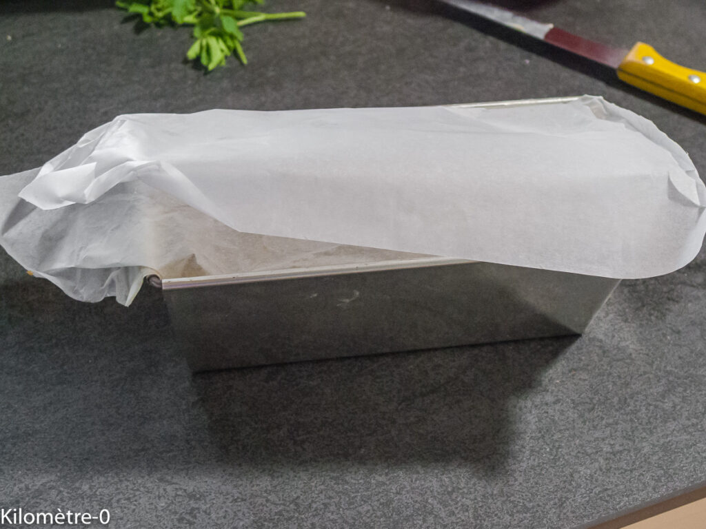 Mélangez le tout et versez la préparation dans un grand moule beurré et dans lequel vous aurez déposé une feuille de papier sulfurisé.