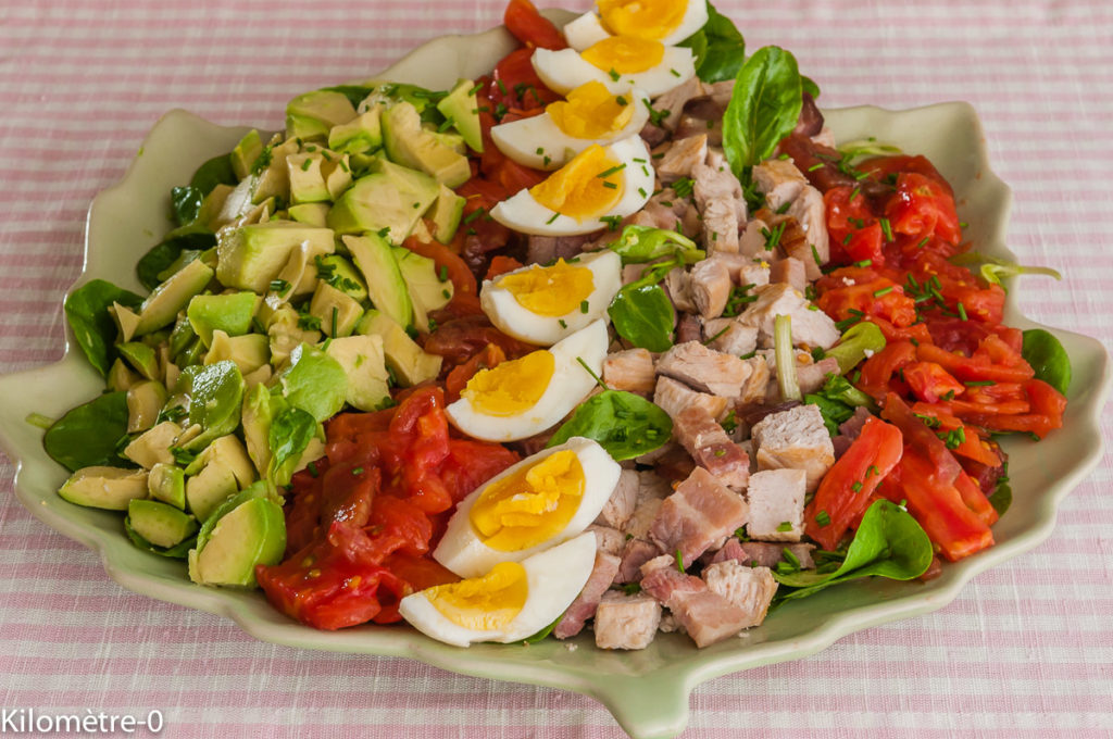 Salade complète dinde, poitrine, oeufs, avocats, tomates et Cie