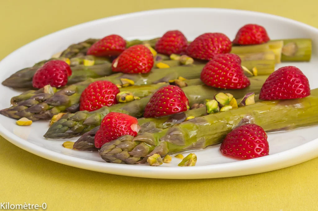 Salade d’asperges vertes aux fraises et aux pistaches - Recette Kilomètre-0