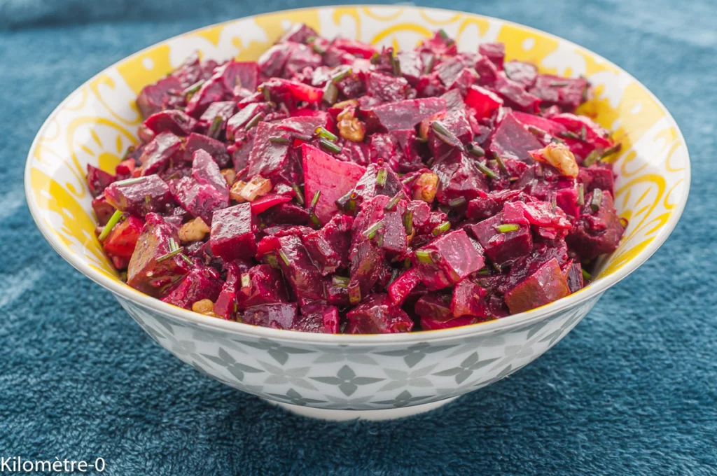 Salade de betteraves rouges aux noix et à la truite fumée - Recette Kilomètre-0